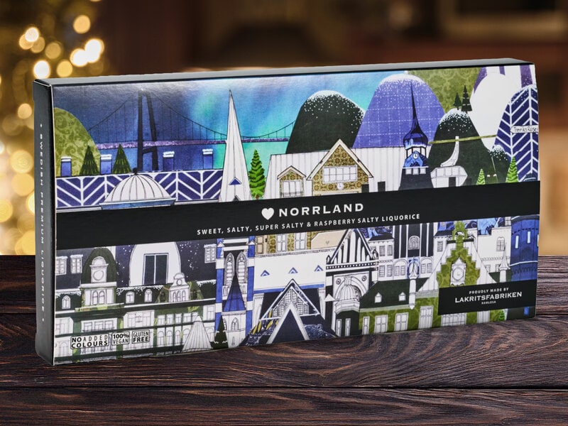 Den karakteristiske smag af Norrland er inspireret af de nordiske traditioner, hvor lakridsen får sin dybe og intense smag fra udvalgte ingredienser. Hver bid tilbyder en perfekt balance mellem sødme og det let salte, hvilket gør den til en ideel snack til både hverdag og fest.