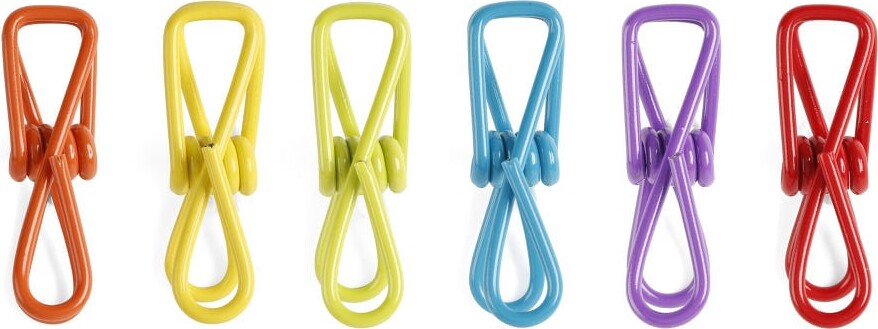 • 12 klemmer i forskellige farver for en sjov og farverig opbevaring.