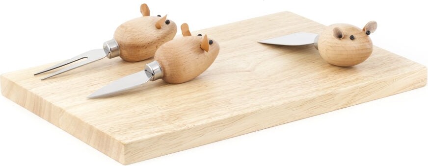 Ostebræt Med 3 Knive - Træ
