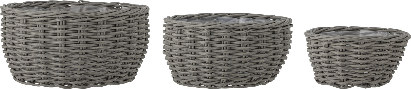 Bloomingville - Fioria Krukke - Grå - Polyrattan - Sæt Med 3 Stk