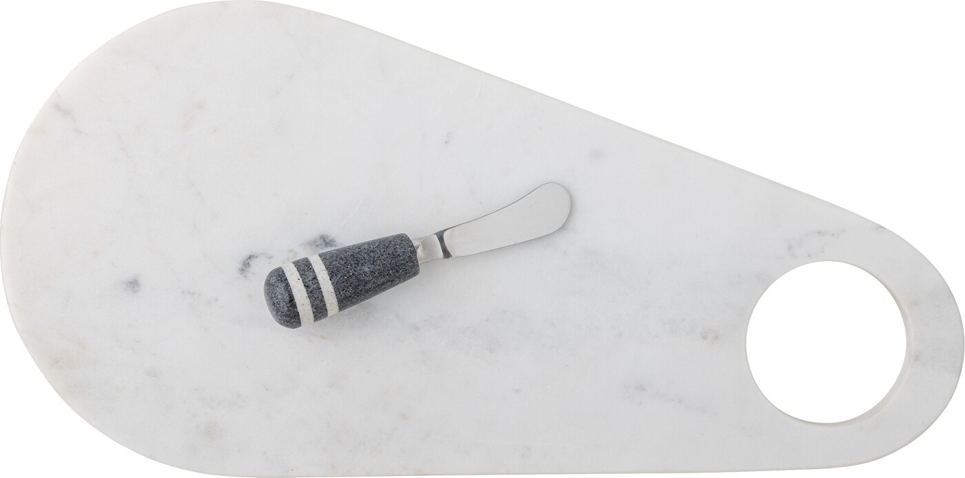 Bloomingville - Abrielle Serveringsbræt Med Kniv - Hvid - Marmor