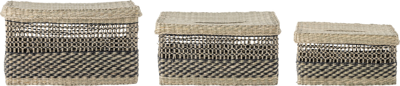 Bloomingville - Sabel Flet Kurv Med Låg - Sort - Søgræs - 3 Stk