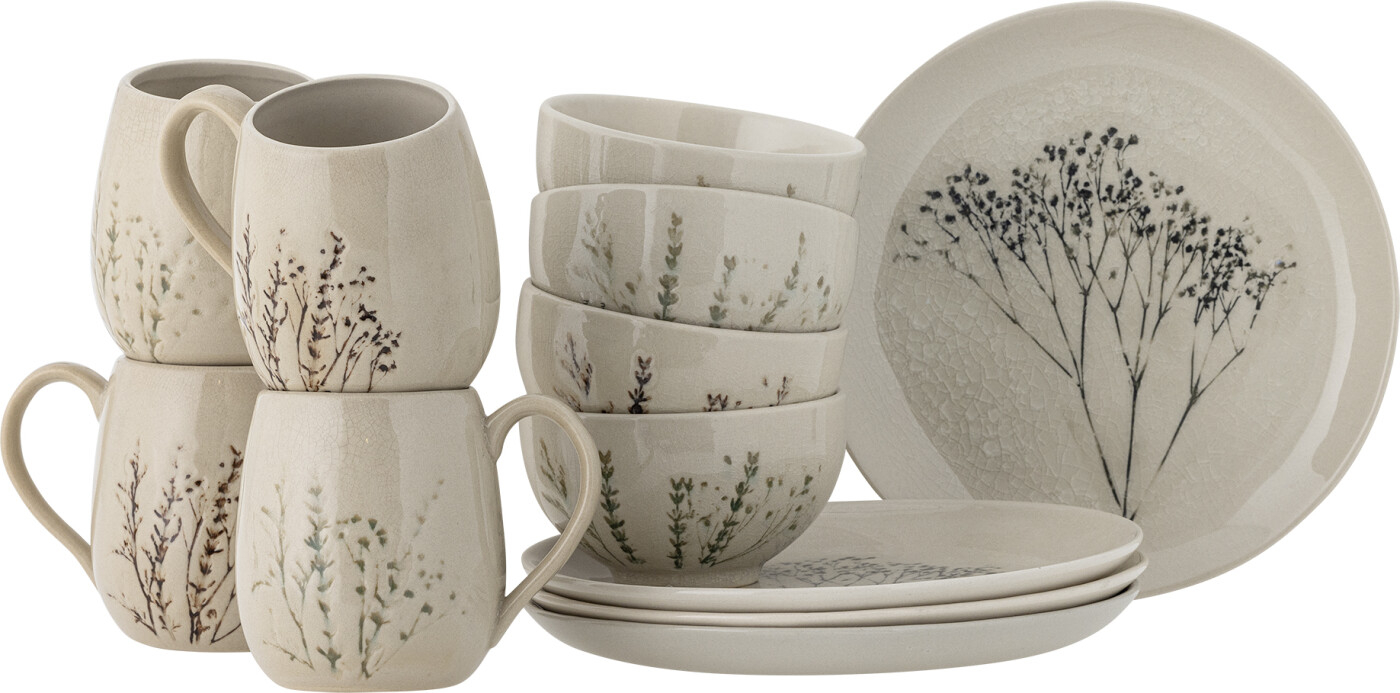 Bloomingville - Bea Morgenmadssæt Til 4 - Natur - Stentøj - 12 Dele