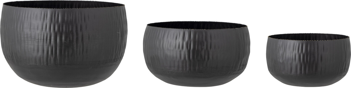 Tilføj et moderne præg til dit hjem med Bloomingville Abisha Krukke. Dette sæt indeholder tre elegante krukker i sort jern, der er ideelle til både indendørs og udendørs brug. Med deres stilrene design passer de perfekt ind i enhver indretning.