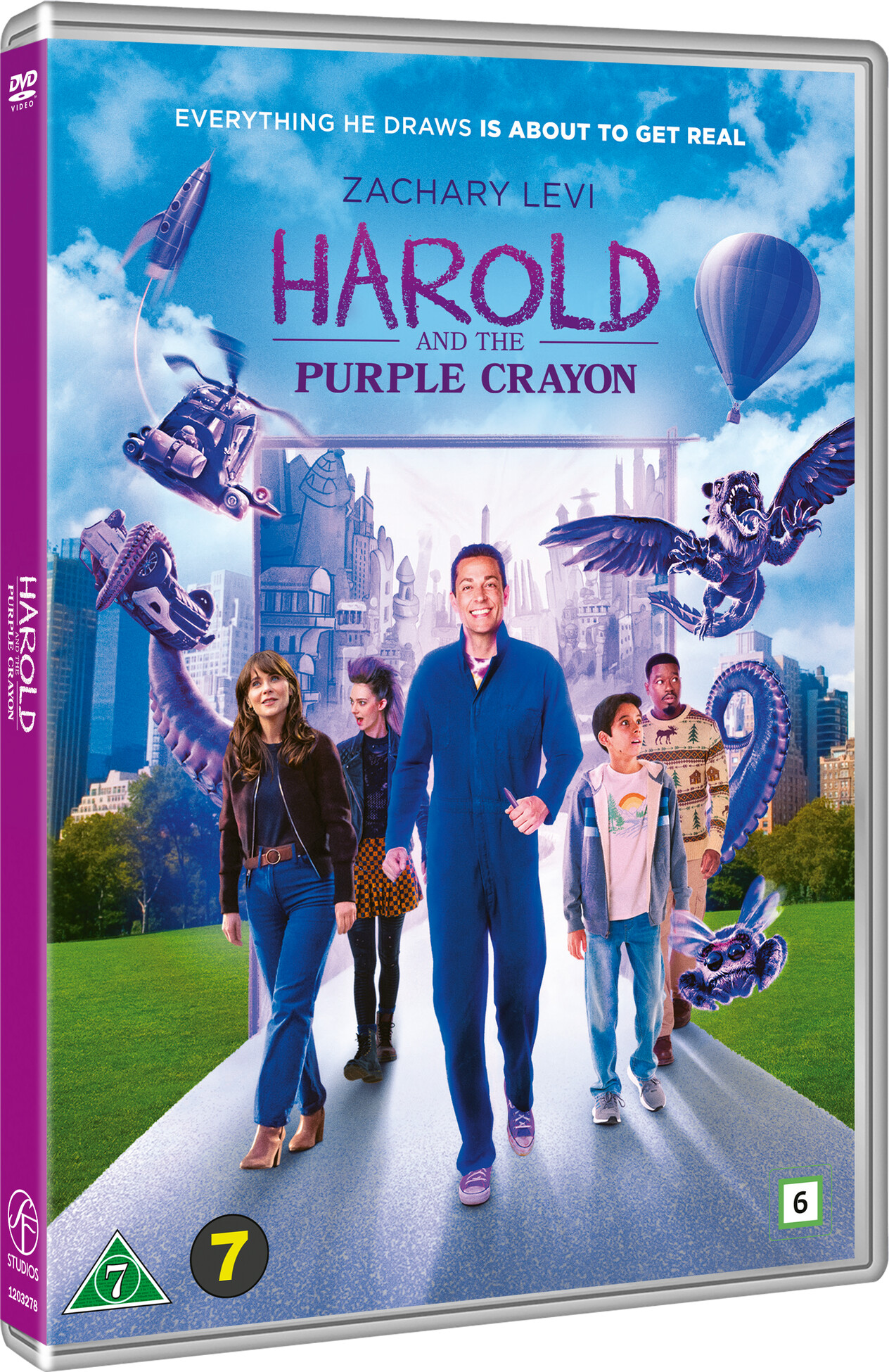 Den eventyrlystne dreng Harald kan vække alt til live blot ved at tegne det med sin trofaste lilla farveblyant, så en dag tegner han en lille dør og hopper ud af sin bog. Nu - voksen og ude i den...