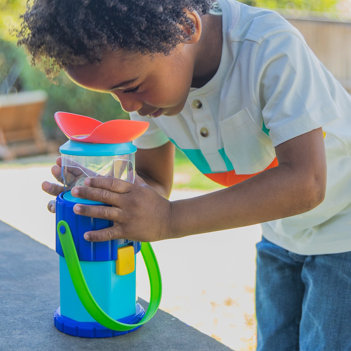 Klar til stenede studier? Unge geologer og andre sten-nørder kan godt tage og finde ædelstene, småsten og andre skatte frem, for her skal de studeres gennem okularet der kan trækkes ud og give 3x forstørrelse.Øverst sidder beskyttelsesbriller, så det er blødt og behageligt at studere stenene, I har fundet frem. (Sten følger IKKE med).Nederst er der et rum med lås, hvor stensamlingen kan gemmes af vejen for nysgerrige pilfingre.Praktisk bærehåndtag så stenKiggeren kan komme med på tur, hvis I mangler sten at studere.Vejledning på engelsk følger med.