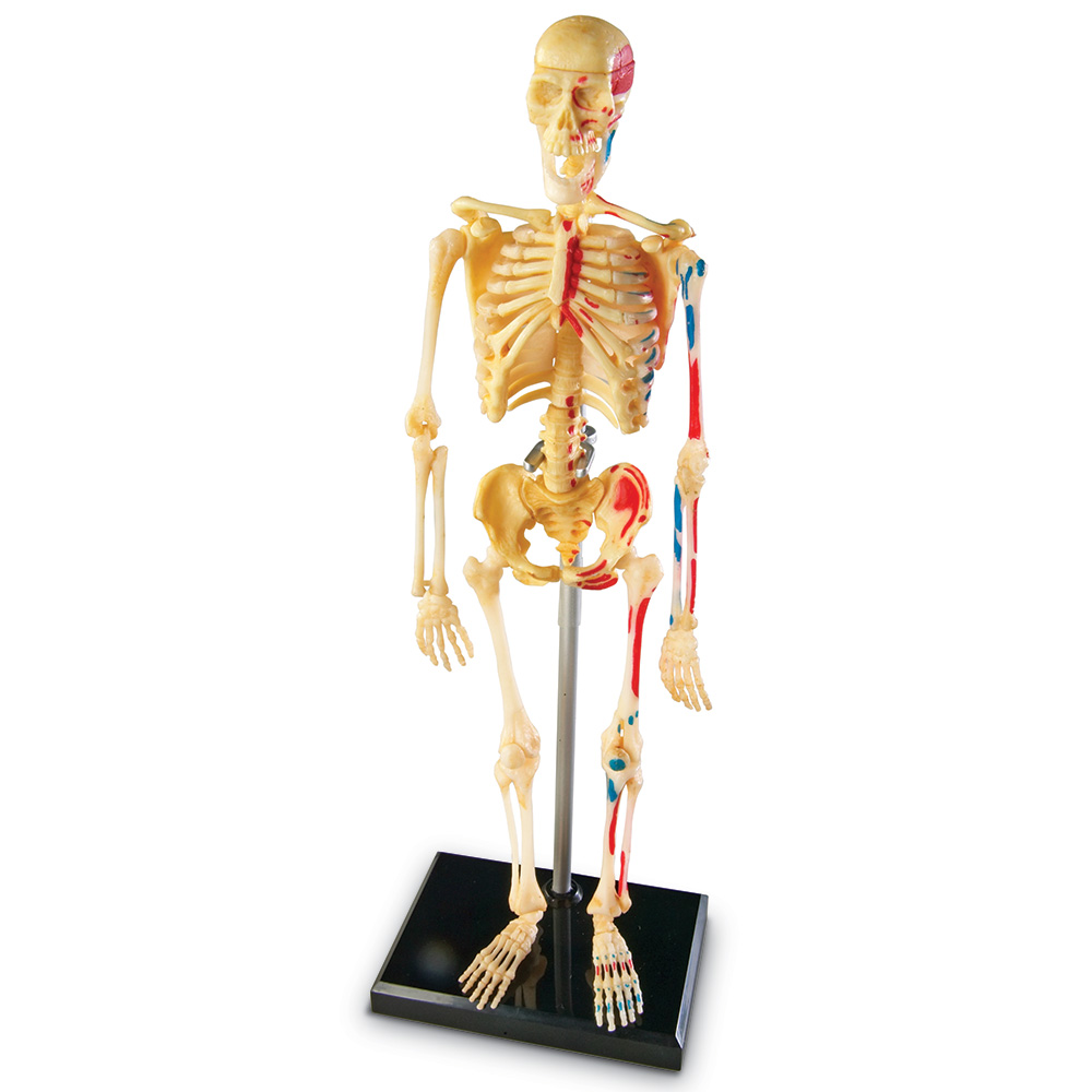 Perfekt til at give et indblik i skellettets opbygning, og hvordan blodårerne løber.Modellen indeholder bl.a.:KraniumBrystkasseRygsøjleHåndBækkenSkinnebenLårbenModellen står på et display, og der er en trin for trin samlevejledning med fakta og fotos.Mål: 23 cm høj, når den er samlet.