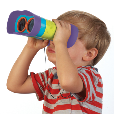 En skøn kikkert, som er nem at bruge for de helt små forskerspirer. Det er ikke nødvendigt at fokusere, og den vejer meget lidt. Linsen er stor, og forstørrelsen er 2xDet vil sige, at den forstørrer 2 gange. Et træ 3 meter væk vil med 2 gange forstørrelse se ud som om, at du står 1,5 meter vækEn lav forstørrelse gør det lettere at se noget skarpt ud af kikkertenLader dit barn opleve, hvordan en kikkert får noget til at komme tættere påDet hele er i et meget solidt design og kan nærmest ikke bruges forkertSikkerhedsstrop, så der ikke sker ulykker.Kikkerten måler 17 x 14 x 7 cm.