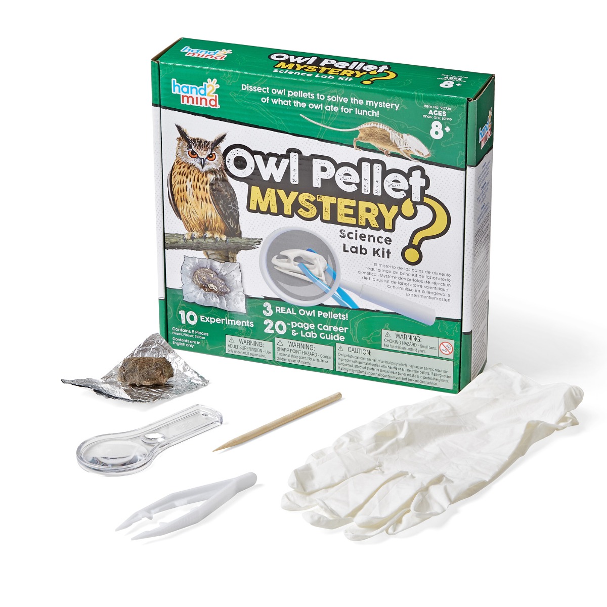 Har du en nysgerrig, kommende videnskabsperson derhjemme, som synes at dyrs efterladenskaber bare er det sejeste, der findes?Så brug en eftermiddag eller to på at undersøge denne utroligt fascinerende klump uglegylp med rigtige, videnskabelige instrumenter. Der er ægte knogler i klumpen med tørret uglegylp, som fortæller spændende historier om, hvad uglen mon har spist. Mysteriet i denne æske er måske også, hvor uglegylpeklumpen kommer fra? Det undrede vi os i hvertfald over. Børn fra 8 år kan selv finde ud af at udføre aktiviteterne, hvis de kan læse engelsk eller måske med hjælp til lige at forstå teksten.Biologi i børnehøjde gør dit barn endnu mere videbegærlig om den store, vide verden med udgangspunkt i denne lille, delikate klat. 10 eksperimenter med at dissekere og endevende uglegylp-prøvenGuide på engelskPincet, handsker, træpind, fad og forstørrelsesglas - og naturligvis uglegylpeklumper.Om indholdets ophav:Mysteriet i denne æske er måske også, hvor uglegylpeklumpen kommer fra? Det undrede vi os i hvertfald over. Faktisk blev det til et væddemål hos legetanterne.Findes der en uglefarm, hvor de sidder og gylper dagen lang?Er klumperne formet af menneskehænder?Indsamlet i et samarbejde med en uglepark, der lige havde 5000 klumper uglegylp i overskud - hver dag?Nysgerrighed er godt, synes vi - så vi ringede lige og spurgte. Det viser sig, at der faktisk findes en jobbeskrivelse ovre i USA, der hedder gylpeindsamler. Indholdet i denne æske er nemlig indsamlet fra vilde ugler i de amerikanske skove. Den store hornugle er meget udbredt i USA, hvor der findes omkring 5,3 mio af dem. Denne ugle er ikke truet. Den bliver meget gammel - op til 50 år, og den er den mest tilpasningsdygtige af alle ugle arter. Den kan leve i mange forskellige miljøer og klimazoner, og dens føde er også varieret. Så det medfører ingen fare eller trussel for uglerne, at deres gylp bliver indsamlet og studeret af os mennesker.