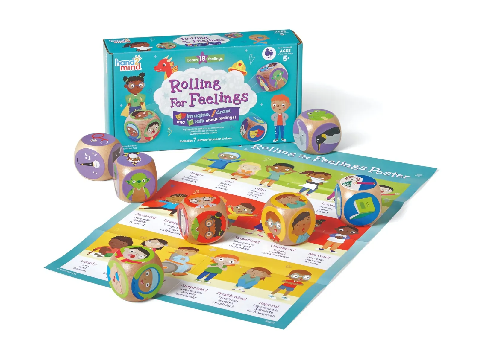 I dette sæt finder du: 3 terninger med i alt 18 forskellige følelser3 terninger med 18 forskellige børn1 terning med 6 forskellige symboler 1 plakat med følelserBrug sættet til at starte samtaler om følelser med dit barn eller en børnegruppe.