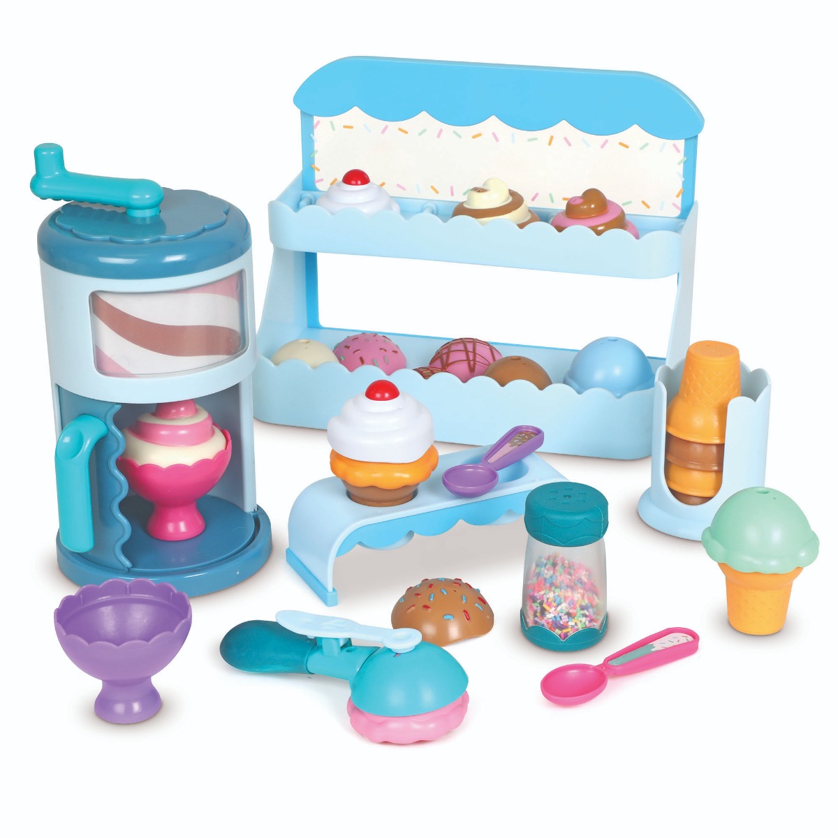 Kom og køøb. Hvor mange kugler? To? Og skal der krymmel på?Der er nok til hele 6 vafler og 3 bægre med lækker is, der aldrig smelter og drypper i sofaen. Isbutik med displaySofticemaskineHolder til isvafflerneSkeer og isskeKrymmel2 bægre6 vafler og 6 toppings.Dejlig leg hvor børnene kan øve sig i at tage imod bestilling eller være kunden, der kommer og køber. I kan eventuelt udvide med matematikleg, så dit barn skal finde på gode is-tilbud og måske lidt mængderabat.