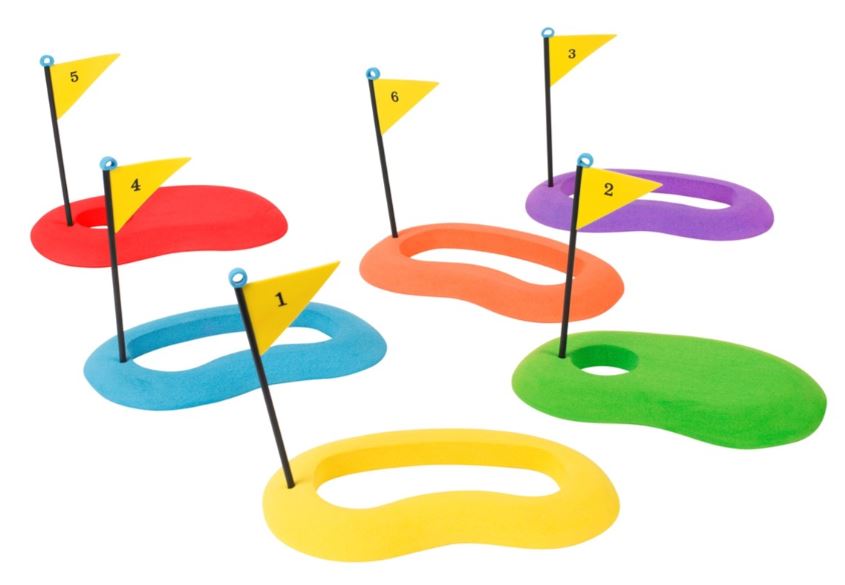 Spordas - Golf puttehuller med flag, 6 stk. Er velegnet til Muskel-ledsansen,Hånd-øje-koordination,Koordination og passer til aldersgrupperne: 3 år,4 år,5 år,6 år,7 år