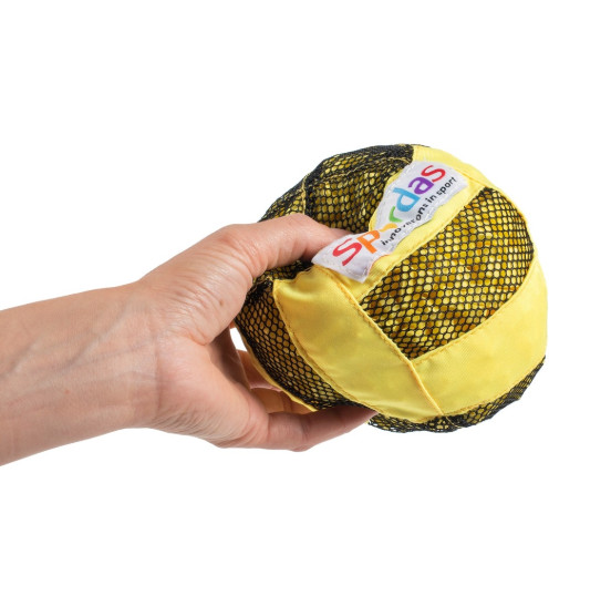 Disse ekstraordinære bolde er overraskende lette at se, kaste og fange. Nyd de smukke farver og den bløde fornemmelse.Sælges assorteret, så du kan vente i spænding på at finde ud af, hvilken farve succesbold, der er hoppet ned i din pakke.Små stykker af skum ligger i en pose af Lycra® og net. Spil, leg eller terapi med denne bold er absolut smerte- og skadefri. At bruge den til pudekamp, hyggeslagsmål eller til at kanalisere vrede er derfor intet problem. Desuden flyder den på vand.Assorterede farver.Størrelse: Ø20 cmVægt: 160 gram.OBS: Prisen er pr stk.