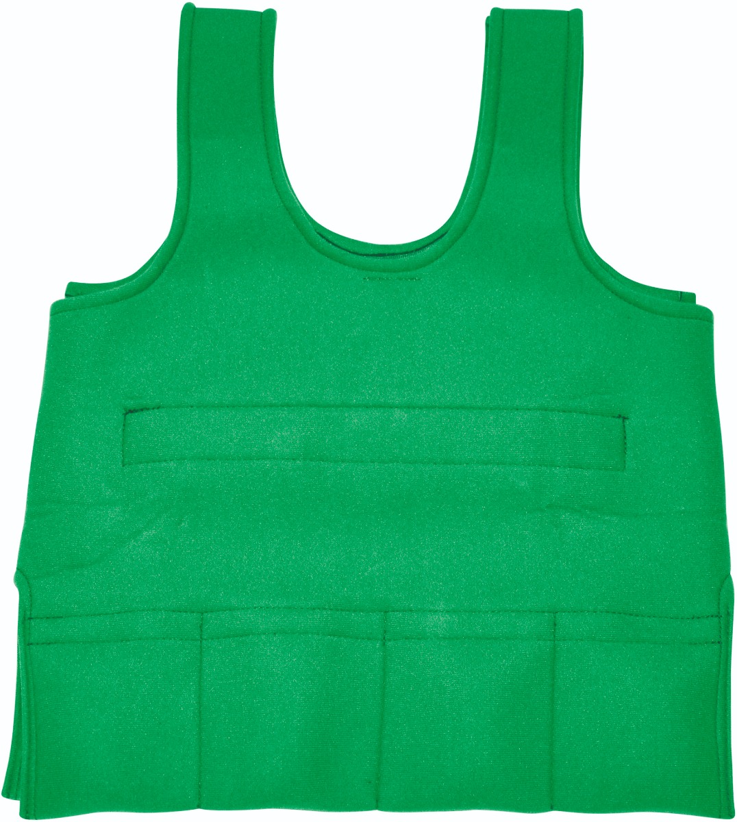 Blød og behagelig vest med vægte i, som er god til sanseintegrerende træning af børn.Vægtene sidder under dit barns tyngdepunkt i skjulte lommer. Vægtene giver en følelse af stabilitet og tryghed, fordi den proprioceptive sans stimuleres og frigiver hormonet oxytoxin.Obs: Den er ikke velegnet til styrketræning. Tyngden er mere sådan - som at få et bjørnekram.Denne vest er størrelse medium, 86 cm i taljen, 43-56 cm i højden. Når du skal vurdere, hvilken størrelse, dit barn skal bruge, så sørg for at måle efter. Vægtene skal sidde under navlen. Denne vest passer til børn omkring 10 år, men køb vesten efter højde og vægt, ikke efter alder.Generelt for vægtprodukter bør vægten ikke udgøre mere end 10 % af dit barns vægt. Men det er lidt anderledes med veste: Et barn, der vejer fx 23 kg, vil opleve en vest på 1,8 kg som en ret stor belastning, så det opfordrer vi dig til at tage i betragtning i den sanseintegrerende træning med en vægtvest.Vægtprodukter kan anvendes i omkring 15-20 minutter ad gangen, derefter aftager effekten, da kroppen vænner sig til den ekstra vægt. Efter 20-30 minutter udebliver de positive effekter.Denne vest i str. medium er grøn.