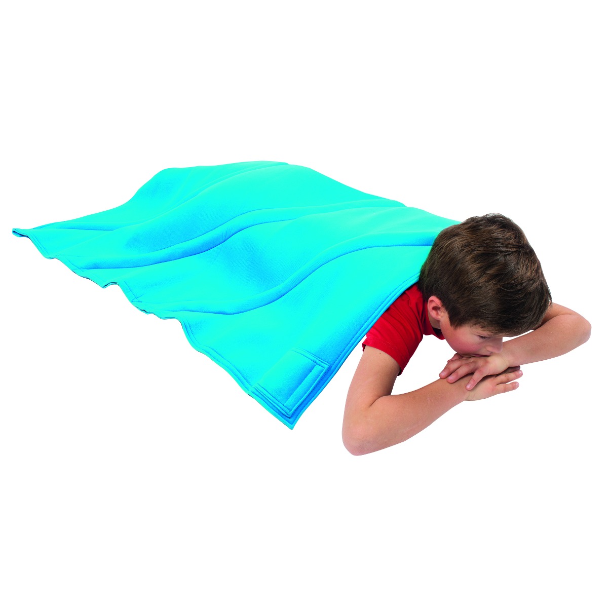 I dette bløde tæppe er der ligeligt fordelte vægte, som giver en følelse af tyngde, stabilitet og tryghed for børn med behov for stimulering af muskel-ledsansen. Når kroppen modtager besked om tyngde via denne sans, frigives oxytoxin, og det medfører en følelse af kropslig afgrænsning, ro og afslapning. Mange børn oplever, at det er meget nemmere at falde i søvn med et vægttæppe (eller en kugledyne), og at det giver ro i hovedet, også når man bare sidder med tæppet i en stol eller lige tager en slapper i 15 minutter med tæppets lette tryk over sig. Tæppet kan bruges til beroligelse op til ca. 30 minutter eller til f.eks. når barnet skal falde i søvn, hvorefter det så skal udskiftes med en almindelig dyne til resten af nattens søvn.Det er velegnet til børn med uro og søvnbesvær, både når problemerne har udgangspunkt i en diagnose, eller når det handler om, at det blot er svært at falde til ro i en presset periode. Vægttæpper må højst veje 10 % af barnets vægt, så dette tæppe er velegnet til børn, der vejer over 35 kg. Vægtene leveres adskilt fra tæppet, så du skal selv skubbe dem på plads inden i de brede baner i tæppet. Lidt ligesom at komme en elastik i taljen på et par bukser. Vægtene kan så til gengæld let tages ud, når tæppet skal vaskes.Måler 90 x 122 cm