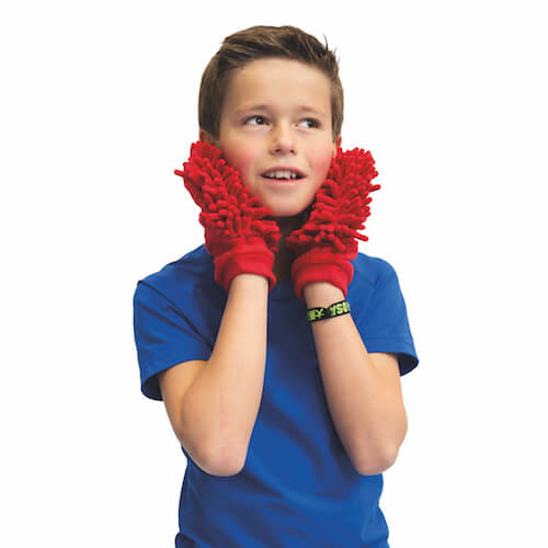 Hvis der skal lidt hjælp til for at holde dit barn fra at sutte eller bide på fingre, hænder eller negle, så prøv disse sansevanter. De lange trevler er sjove at røre ved og skønne at blive rørt med, for de er bare så bløde og stimulerer hudens store følsomhed. Med sansevanterne på afledes dit barns opmærksomhed fra munden eller andre stærkt sensitive områder, og de er rigtig gode at anvende, når der er brug for at få ro på - eller til at desensibilisere overfølsomme områder ved at gnide på dem med sansevanterne.Sansevanterne kan også anvendes til massage. Fremstillet i 100% polyester. 2 stk. medfølger - 16.5 cm lange, 8,9 cm brede.
