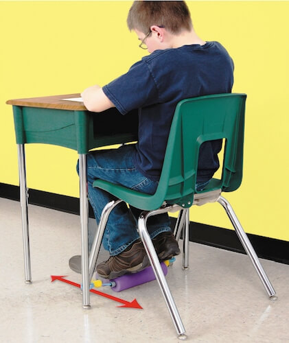Uh, det er altså bare så svært at sidde stille! Skal der lidt ekstra indsats til for at få projektet til at lykkes, så se lige den her koncentrations fodrulle! Fodrullen sættes fast mellem 2 stoleben, og så kan barnet rulle frem og tilbage uden at forlade lokalet eller forstyrre de andre børn. Den er lavet af blødt skummateriale, plast og bungee-elastikker. Imødekom dit barns behov for bevægelse på en inkluderende måde, som samtidig viser hensyn til omgivelserne.