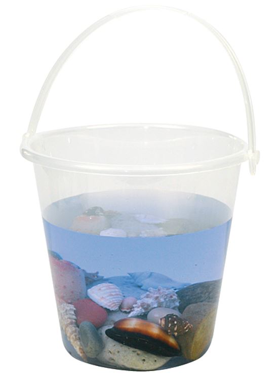 Gennemsigtig spand, som gør det muligt at studere små tanglopper og andre smådyr inde i spanden. Måler Ø øverst 19 cm, Ø bund 12 cm, højde 18 cm.Indeholder 2,5 l.