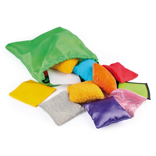 2x10 forskellige sanseposer med forskelligt fyld, farver og overflader. Der medfølger en ekstra pose til at opbevare sanseposerne i. Brug sanseposerne til at øge dit barns opmærksomhed på følesansen og på at kunne beskrive med ord, hvordan noget føles. En god ide er at have bind for øjnene og føle jer frem til to matchende sanseposer, de passer nemlig sammen to og to. Måske kan I mærke, at den røde føles som en form for fisk eller måske Morfar, når han er nybarberet? Føles de lysebrune som en hermelinkanin eller som en humlebi?I kan øve jer i at bruge forskelllige tillægsord til at beskrive, hvordan poserne føles, så udvider I ordforrådet. Fx: ru, nubret, silkeblød, ujævn og klæbrig.Der indgår ikke animalske produkter i sanseposerne, men kunstige alternativer til fx læder og fiskeskel. Sanseposerne er solide og velegnede til institutioner. De kan dog ikke vaskes i maskine, så der skal altid være en voksen til stede.