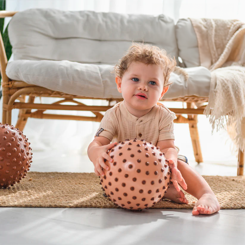 edushape - Sansebold u/luft - Coffee, Ø18 cm. Er velegnet til Følesansen,Hånd-øje-koordination,Kropsbevidsthed og passer til aldersgrupperne: 6 mdr.,9 mdr.,1 år,18 mdr.,2 år,2,5 år,3 år,4 år,5 år,6 år