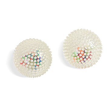 Dejligt bløde sansebolde i gennemsigtigt plastmateriale, som er godkendt til de helt små. 2 stk med forskelligt indhold: perler og små pindeGiver en blid, rislende lyd, som babyer nyderBruges til at kaste, trille, gribe og massere medØ10 cm.