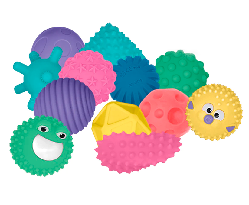 edushape - Sansebolde - Mix, 12 stk. Er velegnet til Følesansen,Hånd-øje-koordination,Kropsbevidsthed og passer til aldersgrupperne: 6 mdr.,9 mdr.,1 år,18 mdr.,2 år,2,5 år,3 år,4 år,5 år,6 år