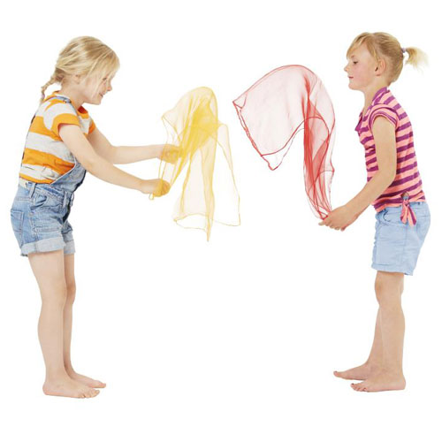 Disse chiffontørklæder har så mange legemuligheder i sig.Man kan bruge dem til trylletørklæder, til at stimulere følesansen, til at kaste op i luften og og og....I denne pakke er der 12 stk. i 4 farver, assorteret i farveMål: 68x68 cmTørklæderne indeholder overskudsfarve, og skal håndvaskes i koldt vand. Tåler ikke maskinvask.