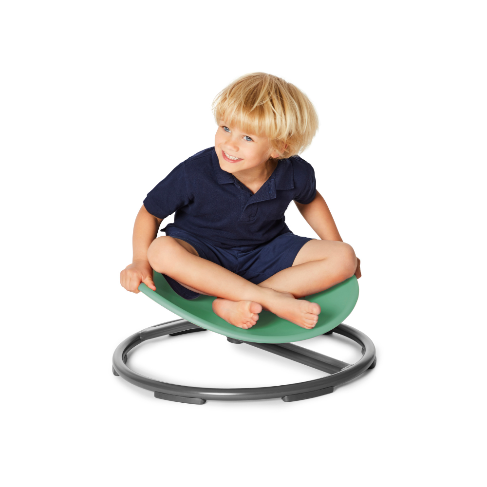 Det er super sundt for labyrintsansen at blive snurret rundt. Og det er ekstra sjovt på denne karrusel , som er designet med en vinkel, så dit barn selv kan drive karrusellen rundt ved at flytte kroppens tyngdepunkt. Man kan selvfølgelig også sætte sving i karruselen ved at skubbe fra med foden.Max belastning: 50 kg.