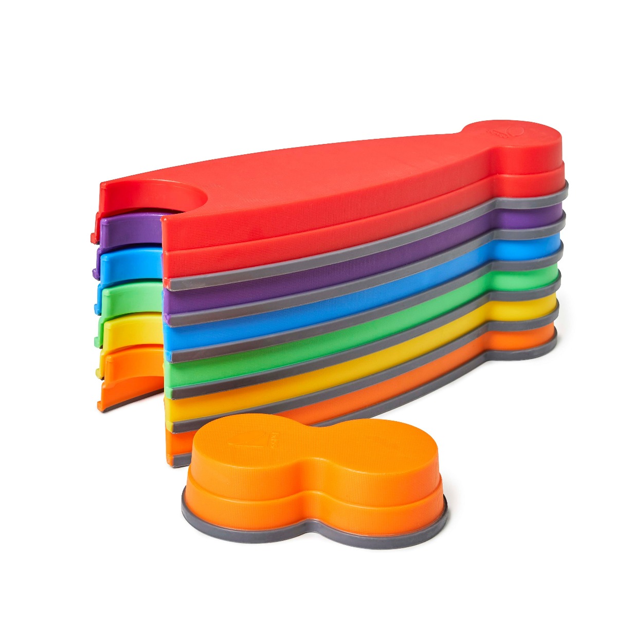 Balancestien består af flotte træde plader, der kan sættes sammen i forskellige formationer, f.eks. som en sti , en halvcirkel eller en slange.Dit barn skal så træde på pladerne uden at miste balancen. Modulerne kan sættes op med afstand mellem hvert modul, så man skal hoppe fra den ene til den eller lave forskellige sværhedsgrader. Der kan med fordel benyttes andre elementer i balance legen, f.eks. kan de kombineres med andre af vores balance produkter, eller man kan bygge øer af puder el.lign. som små forhindringer på vejen.Et sæt består af 6 plader i kraftig hård plast med skridsikker belægning, så de ikke glider. Kan bruges af børn i stort set alle aldre fra 2 år.Flere sæt kan med fordel sættes sammen. Særdeles god til institutioner og til børn med specielle behov og seniorer.OBS. for at få en fuld cirkel, skal der købes 2 sæt - et sæt giver 1/2 cirkel.