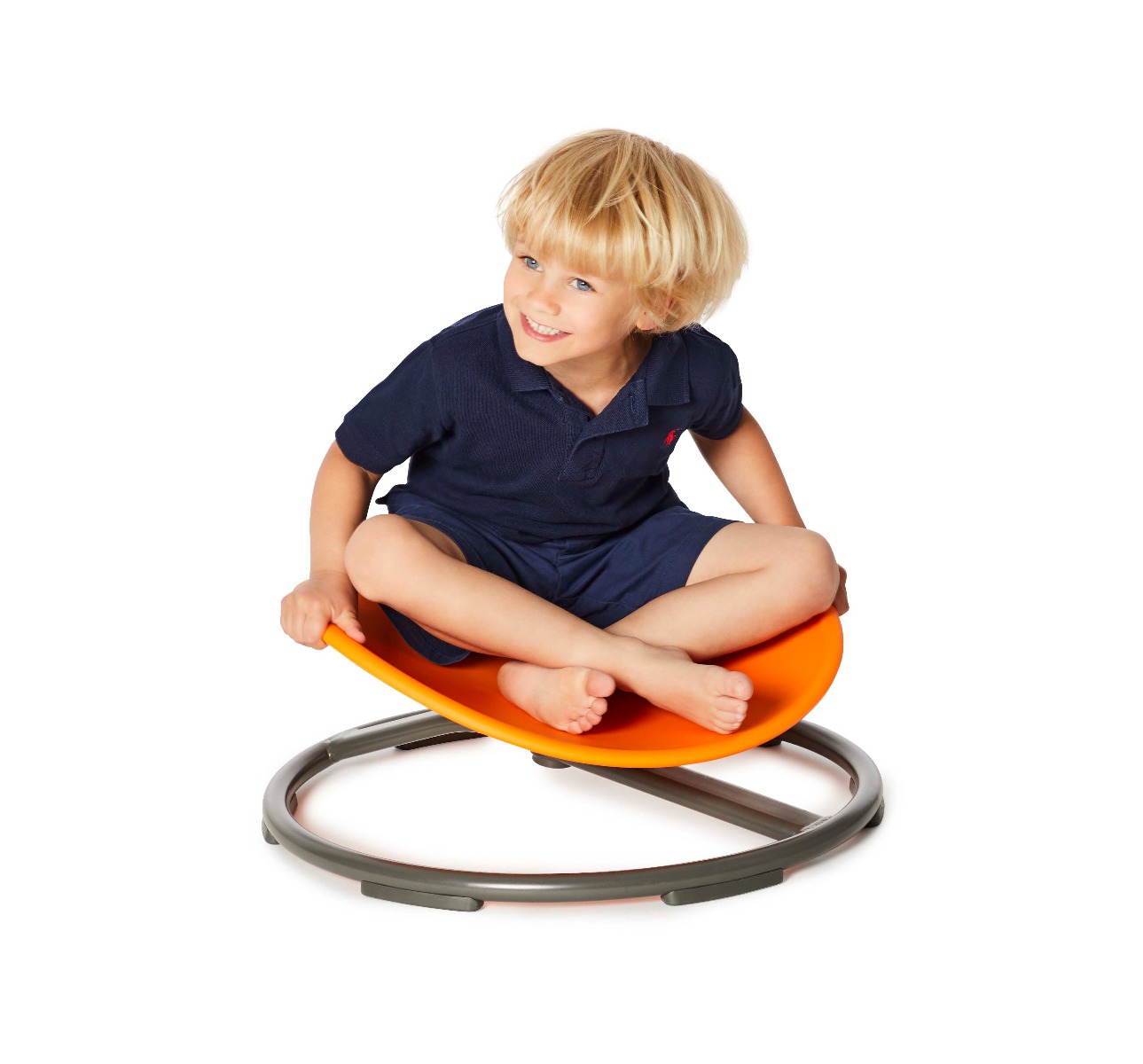 I stil med evighedskarrusellen, er denne karrusel helt vild sjov og alle børn elsker at sætte sig og bare snurre rundt, måske har du set den i børnehaven, SFO'en eller andre steder.Og tænk at sjov leg på den måde er så godt for dit barns motorik og sanser, for ikke nok med at barnet får sig en dejlig grinetur, det får samtidig styrket labyrintsansen og musklerne i mave og arme når balancen skal holdes.Det let skrånende sæde har tykke kanter så barnet kan holde godt fast mens den drejer rundt og hjælper til at barnet hele tiden kan finde balancen. Der skal ikke bruges mange kræfter på at sætte den i gang og man bestemmer selv hastigheden.Karrusellen består af:Kraftigt plastsæde på drejeskiveKraftig stål ramme med gummiklodser underOBS: Karrusel-sædet har førhen været rødt, men fås nu kun i orange.Alder: fra 3 årMax vægt: 50 kg