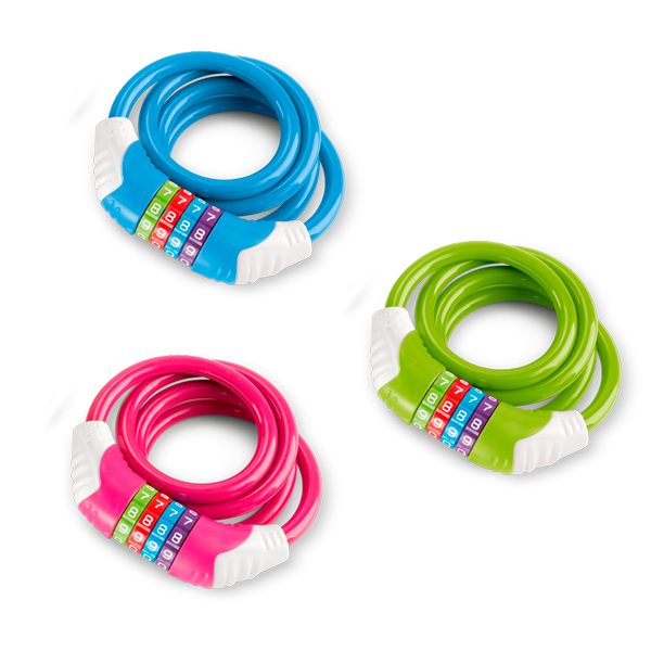 Justerbar lås på hele 120 cm. Kabellåsen har talsystem, som I selv indstiller.Den lange lås gør det til en smal sag at låse cyklen fast hvor som helst.Ø 10 mm. Vælg mellem 3 flotte farver.