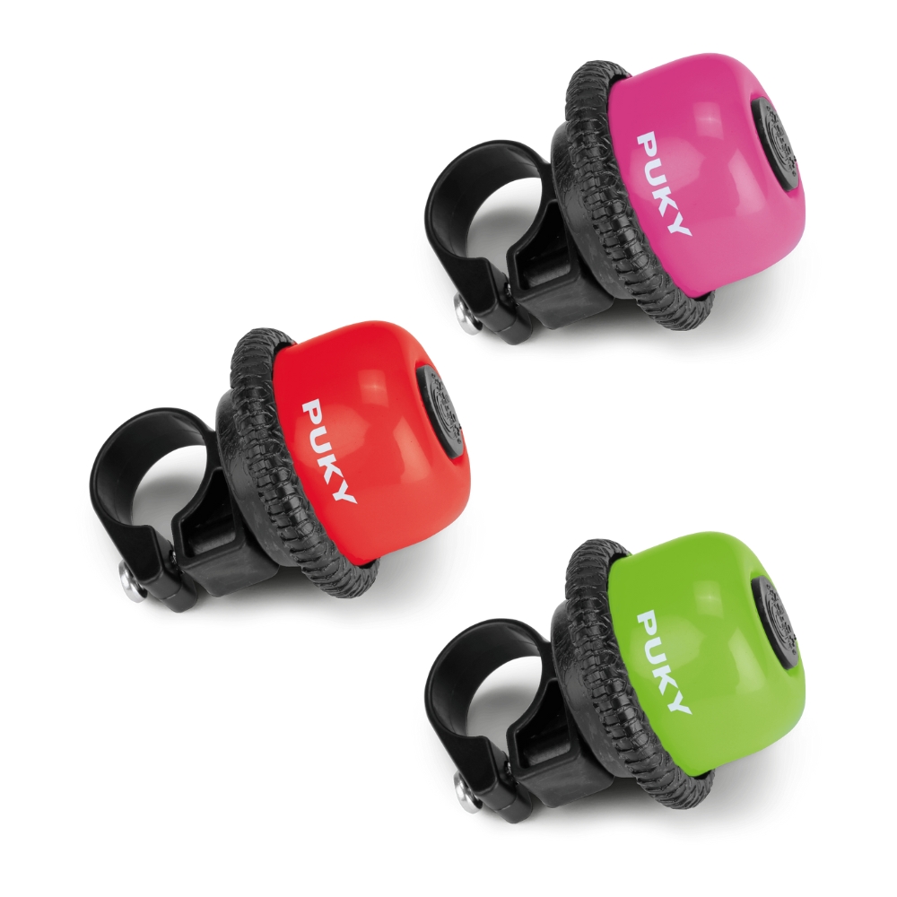 Denne fine ringeklokke er særligt designet til Pukys cykler med styrdiameter på 20 mm - men det kan også bruges til andre cykler og fx løbehjul og gocarts. Farver: Kiwi, pink og rødDiameter: 4,5 cmStyrdiameter: 20 mmMaterialer: Plastik og metal