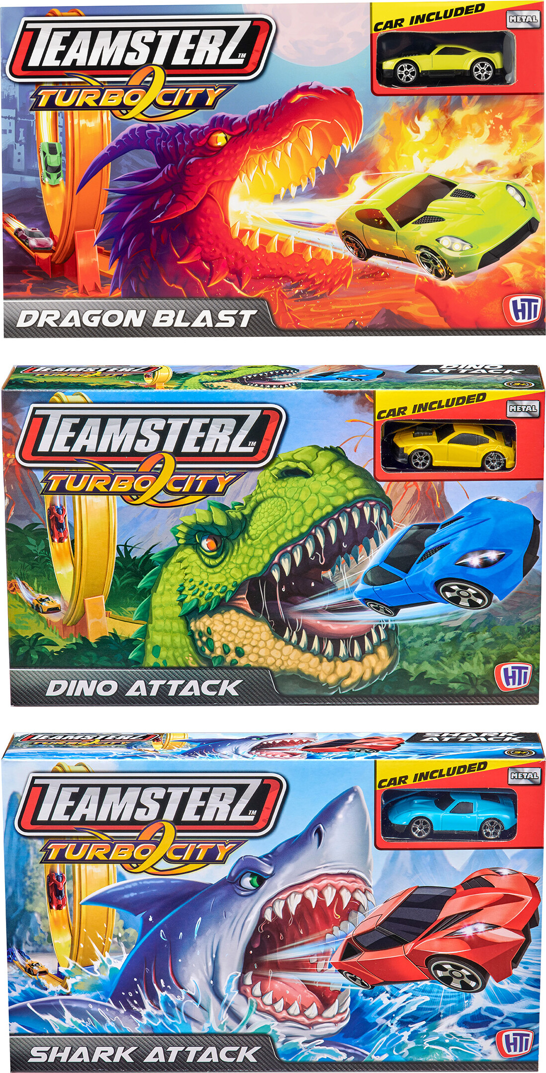 Teamsterz Turbo City Beast Attack Track Sets With 1 Car (3 Assorted)