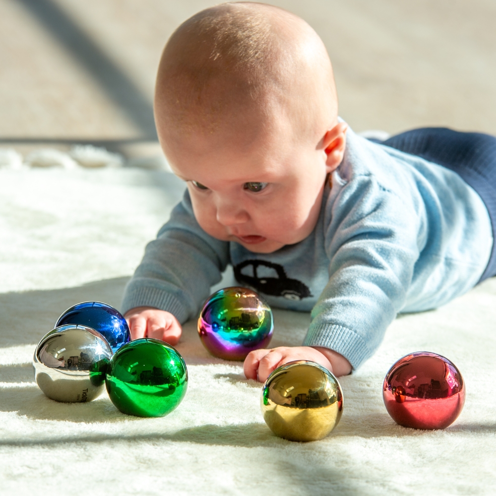 tickit® - Sansekugler af stål - Mystery, 6 stk. Er velegnet til Høresansen,Hånd-øje-koordination,Observation og passer til aldersgrupperne: 0 mdr.,3 mdr.,6 mdr.,9 mdr.,1 år,18 mdr.,2 år,2,5 år,3 år,4 år,5 år