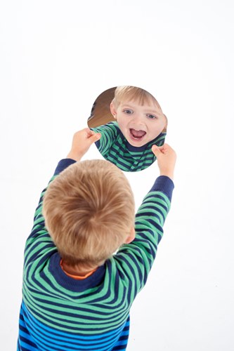 Et sæt med 10 brudsikre plastspejle, udskåret, så de ligner omridset af hovedet på et barn. Spejlene kan bruges til at se sine egne udtryk, når man udtrykker ked-af-det-hed, glæde, overraskelse, frygt, pjat og meget mere.Spejlene kan også bruges til at tegne på med en whiteboard-pen, således at barnet kan tegne et ansigtsudtryk og se sig selv have det ansigtsudtryk.Spejlene kan tørres nemt af igen.Empati læres bl.a. ved at vise og udtrykke hvorledes man har det, således at man bliver bedre til at læse andres udtryk.Str. 21 x 18,5 cm.