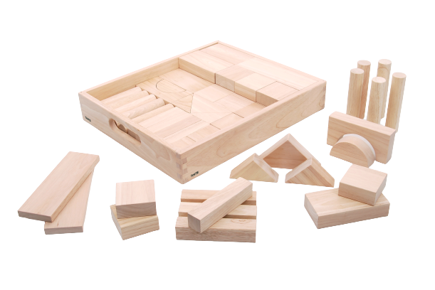 Et meget lækkert og stort sæt af fint udformede og slebne mega klodser af gummitræ.Alle de 54 klodser passer perfekt i den medfølgende træbakke med hÄndtag i siderne, sÄ bakken med dit barns nye yndlingslegetøj kan stÄ fremme pÄ reolen eller pÄ gulvet, nÄr den ikke er i brug. Selv som voksen er det svært at holde fingrene og fantasien fra klodserne, for med de mange forskellige former kan man hurtigt forestille sig at være tilbage i barndommen og bygge flotte lokomotiver eller huse og stable høje tÄrne pÄ benene og vælte dem, sÄ lillebror eller lillesøster griner højt, mens man siger BUUUUMMMM.De kan ogsÄ kombineres med dit barns samling af biler eller dukkefigurer.Klodser er bare en genial mÄde at fÄ fantasien i gang pÄ, og sÄ erfarer dit barn ogsÄ noget om ligevægt og balance, nÄr I bygger med klodserne. Overfladen pÄ klodserne er som sagt glat, mat og dejlig at røre ved. Alle kanter er fint slebne, og det er i det hele taget ret skønt at have klodserne i hænderne for bÄde børn og voksne. I sættet er der bÄde runde stænger, firkanter, rektangler, broer, halvcirkler og trekanter. I kan bygge alt mellem himmel og jord.Virkelig en skøn barsels- eller fødselsdagsgave til de mindste venner.