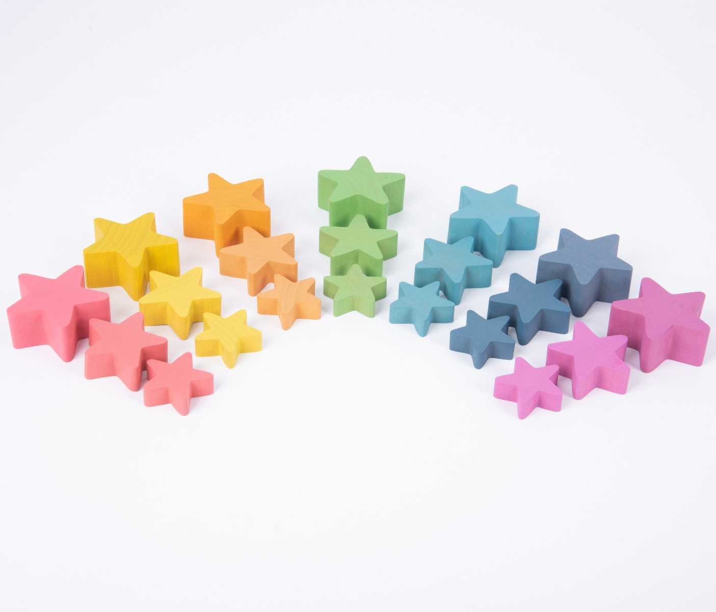 tickit® | Stjerner af trę - Regnbue, 21 stk