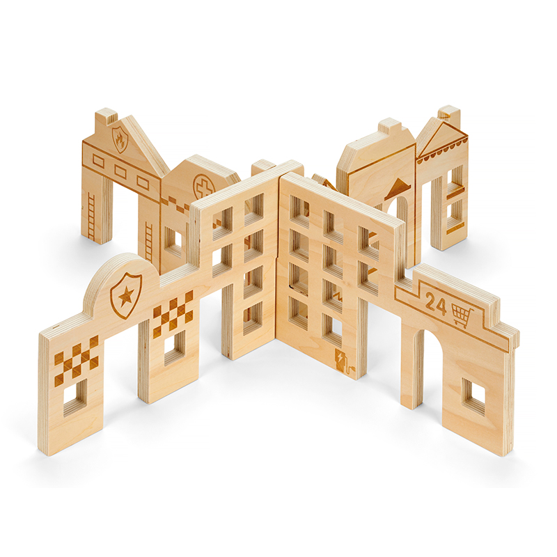 2 dele af træ, der sammen danner en flot ramme om dit barns rolleleg. Der er brændt dekorationer ind i træet, så dit barn kan mærke rillerne med fingerspidserne.