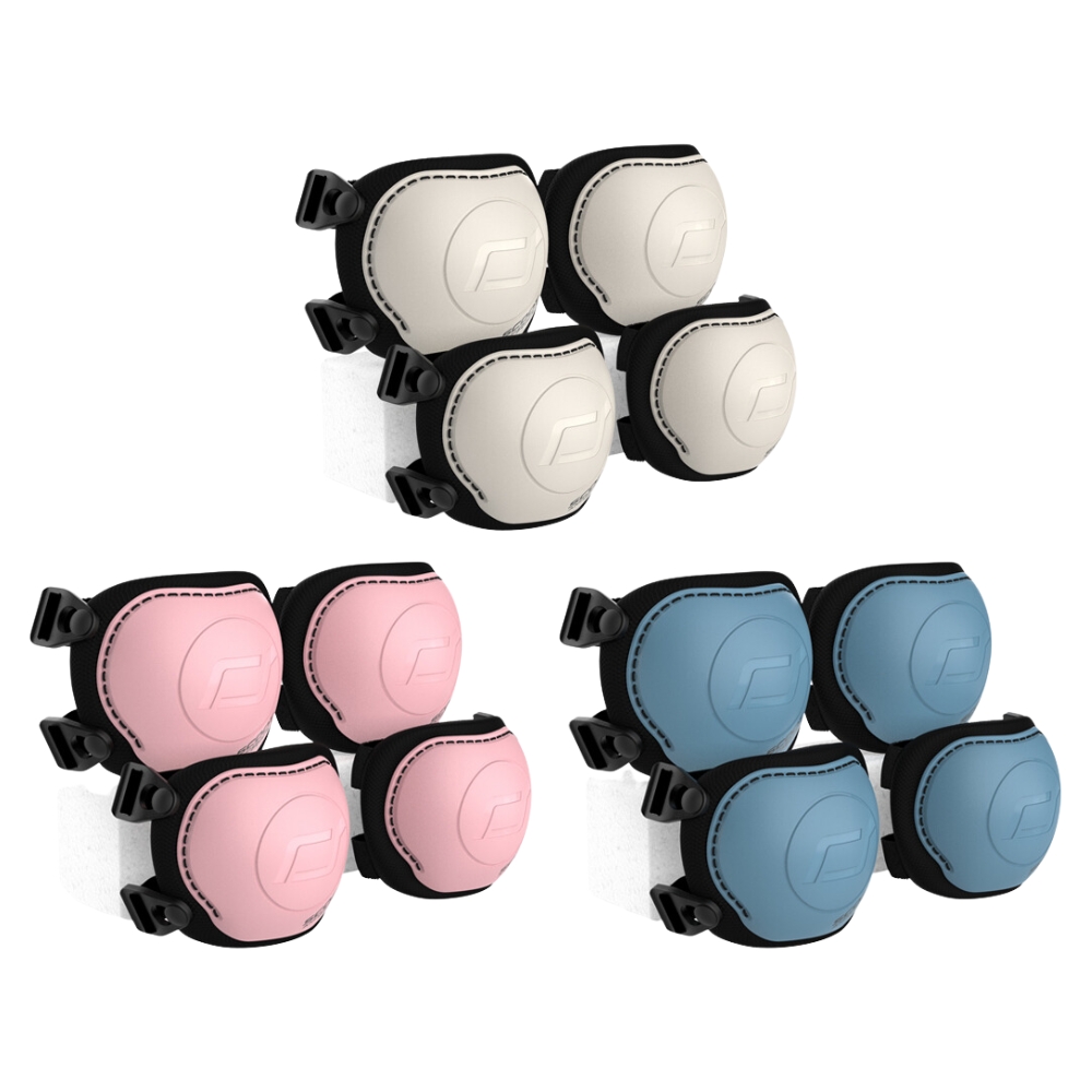 Sikkerhedsudstyr bliver kun på, hvis det er behageligt. Det er dette beskyttelsessæt. Her er 2 albuebeskyttere og 2 knæbeskyttere, som er nemme at tage af og på. Størrelsen XXS passer til små albuer på 15-21 cm og knæomkreds på 20-27 cm.