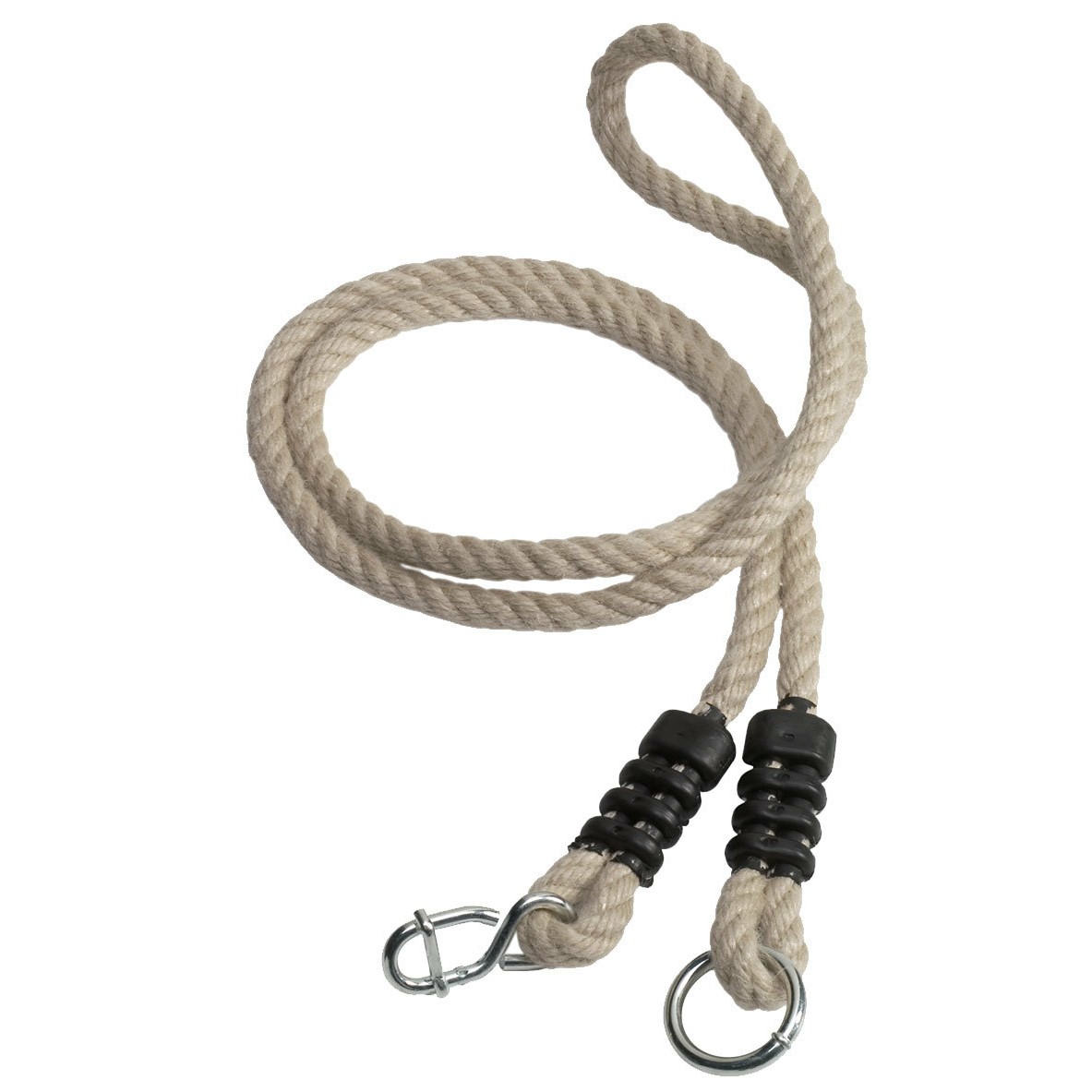 Har du købt en gynge uden reb. Så kan du købe rebene med justerbar længde lige her. Forlænger-reb til gynge, som forlænger fra 0,75 m - 1,35 m.Ringene er galvaniserede.Obs: Der er kun et reb i denne pakning. Til de fleste af vores gynger skal du bruge to.Rebet er af poly-hamp (plastmateriale med finish som hamp) og kan åbnes i den ene ende og monteres i fast ring/krog. Skruer og rawplugs medfølger ikke.
