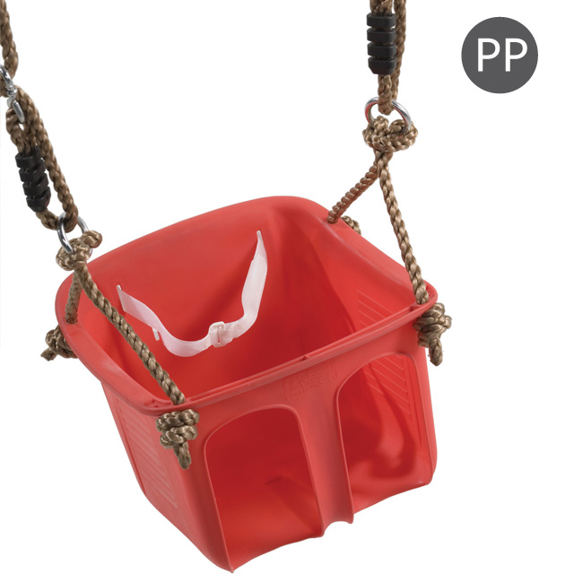 Der findes både en rød og en grøn udgave. Vælg farve ovenfor.Denne klassiske babygynge kender vi vist alle. Det lille barn sidder trykt og godt, og kan spændes fast i selen. Denne gynge er rigtig god som første gynge, da sædet er dybt, og siderne støtter det lille barn.Det er dog vigtigt at dit barn kan holde hovedet stabilt selv.Gyngen har justérbare reb og galvaniserede stålringe.Reblængde: 125,5-185 cmAnbefalet ophængshøjde: 1,95-2,4 meter.Er din ophængshøjde højere kan forlængerreb eller bæltestropper tilkøbes.Selve gyngen måler: b: 30 cm h: 26 cm d: 32 cmDu kan købe sikkerhedsgodkendte ophæng her. Denne gynge kræver to stk.