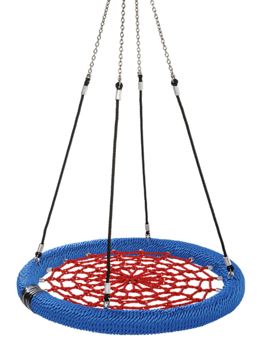 Det er en vidunderlig fri oplevelse at gynge på denne gynge helt uden begrænsninger for retning. Da ophænget kun skal fæstnes i ét punkt, kan den nemlig både snurre rundt og svinge til alle sider, og det giver en helt utrolig følelse af både kildren i maven og beroligende frihed.Køb et sikkerhedsgodkendt ophæng her.Det er en kvalitetsgynge beregnet til institutionsbrug, som har rustfrit stål og armeret reb i både ophæng og net. Stålrammen er beklædt med chokabsorberende materiale, så børnene ikke slår sig. Den måler 120 cm i diameter. Ophængets højde kan nemt reguleres, da det er med D-kroge. Rød/blå.Husk at alle gynger skal monteres og ophænges af én, der har forstand på dette. Legeakademiet tager sig ikke af denne del af et projekt. VI GØR OPMÆRKSOM PÅ AT VAREN IKKE KAN LEVERES TIL PAKKESHOP. DEN KAN KUN SENDES MED PRIVATOMDELING ELLER TIL EN FIRMAADRESSE. VÆLG EN AF DISSE LEVERINGSFORMER UNDER LEVERING.