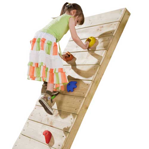 Til sjov udendørs eller indendørs leg - lav en udfordrende klatrevæg og lad dit barn blive god til klatre. Grebene er udformet til at passe til børnehænder, og der er ingen skarpe kanter.De fem greb er i 5 forskellige farver og 3 forskellige former.2 huller i hvert klatregreb sikrer, at de ikke drejer rundt.Monteres på trævæg eller træplade med tykkelse på ca. 20 mm.Man skal kunne komme til træpladen fra bagsiden, når man monterer klatregrebene.Monteringsbolte medfølger.Mål: Ø 115 - Ø 130 mm