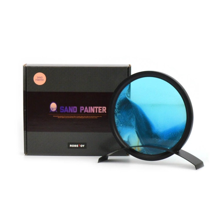 Hver gang I vender og drejer rammen skifter sandbilledet indeni. Oplagt til at falde i staver og bare være og observere uden at skulle nå lektier, træning eller legeaftaler. Det er både sjovt og dejligt beroligende at studere sandkornene glide rundt og danne flotte mønstre, som ændres alt efter, hvordan du bevæger rammen.