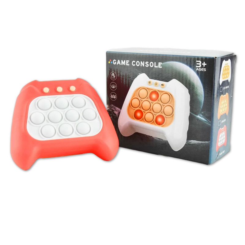 Spillet her tester og udfordrer din reaktionshastighed, når du hurtigst muligt skal trykke på de Pop It dutter, der lyser op.I takt med at du bliver bedre, kan du gennemføre flere og flere levels. Prøv også spillets multiplayer-funktion.Praktisk interaktivt fidget toy, der er lige til at tage med i tasken til tidspunkter, hvor dit barn trænger til lidt tidsfordriv, underholdning eller sansestimuli.Bruger 3 AAA batterier, som ikke følger med.