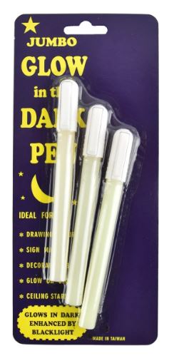 Når du skal lave skattejagter til dit barn, skrive beskeder fra jeres husspøgelse eller måske dit barn skal skrive hemmelige beskeder til kammeraterne eller til hunden, så er disse tusser geniale. (Tænk vi kom først til at skrive skrige i stedet for skrive :D ). Deres streg kan nemlig kun ses i mørke. 3 stk.
