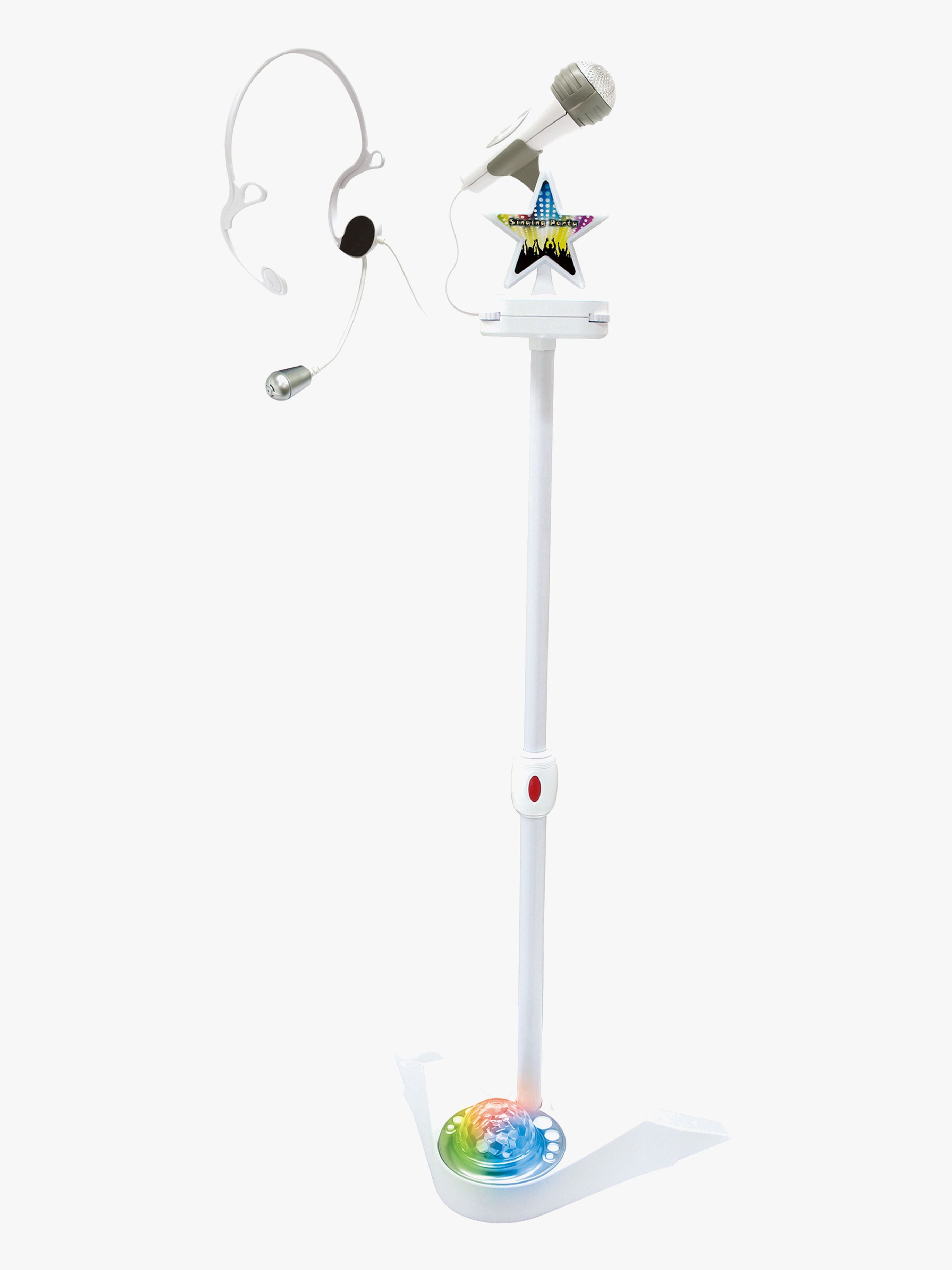 Karaokemikrofon fra Cloudberry Castle med multifarvede lys. Den har 2 medfølgende mikrofoner, som den lille musikelsker kan udforske. Perfekt til mange timers sjov. - Mobilholder. - AUX-indgang. - Lyseffekter. - Stemmeforvrænger. - Volumenkontrol. - Genopladeligt batteri. - Højttaler i høj kvalitet. - Justerbar højde. - CE-mærket. - Anbefalet alder: Fra 3 år. - Batterier medfølger ikke.