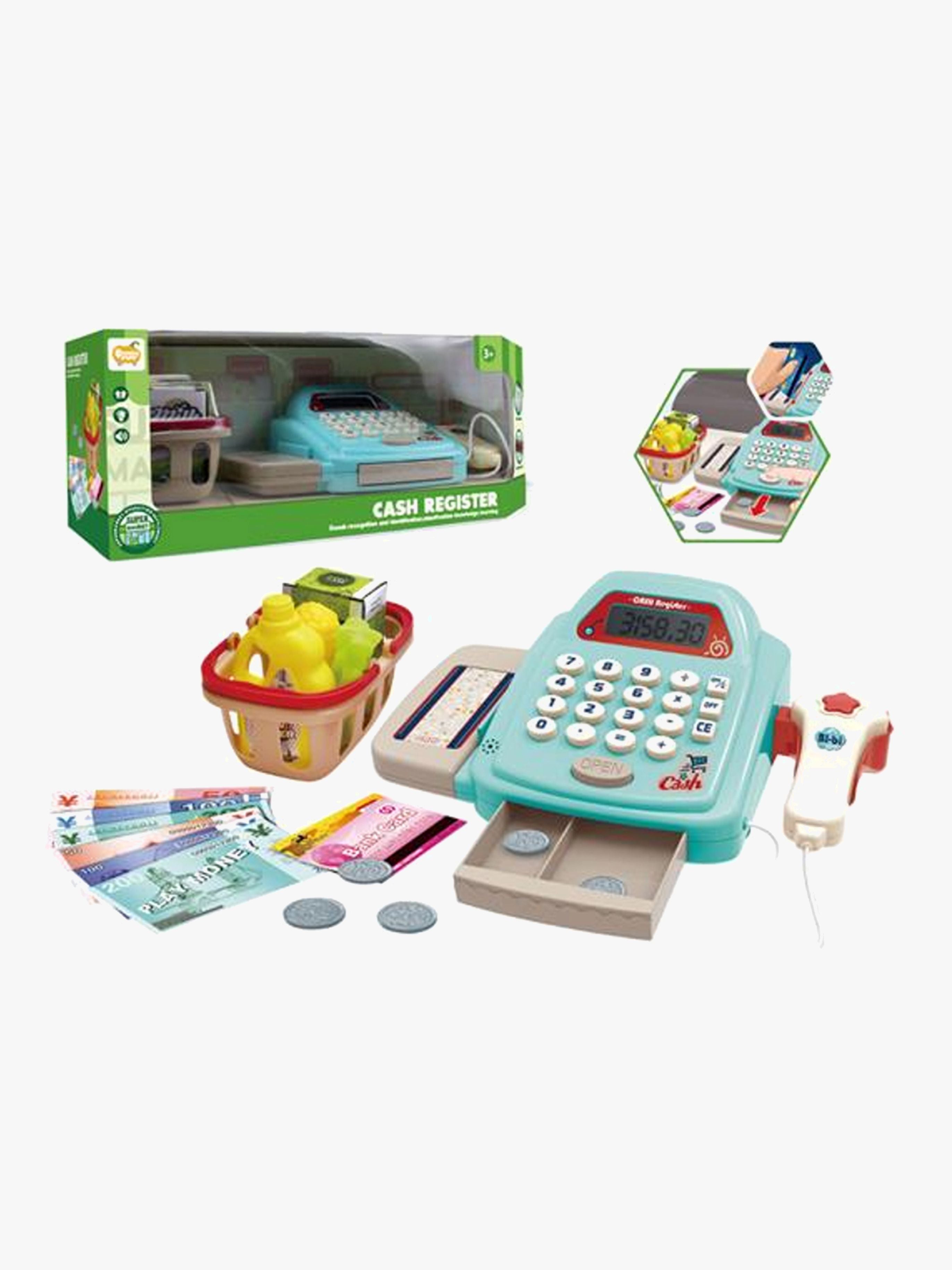 Kasseapparat fra Cloudberry Castle med lys- og lydeffekter. Det har en masse sjovt tilbehør til alle slags glade indkøb. Perfekt til timevis af fantasifuld leg. - Indeholder: Et kasseapparat, en kortlæser, mønter, sedler og en masse andet spændende tilbehør. - Fungerende lommeregner. - Til sjov og fantasifuld rolleleg. - CE-mærket. - Anbefalet alder: Fra 3 år. - Batteri: 2xAA (medfølger ikke).
