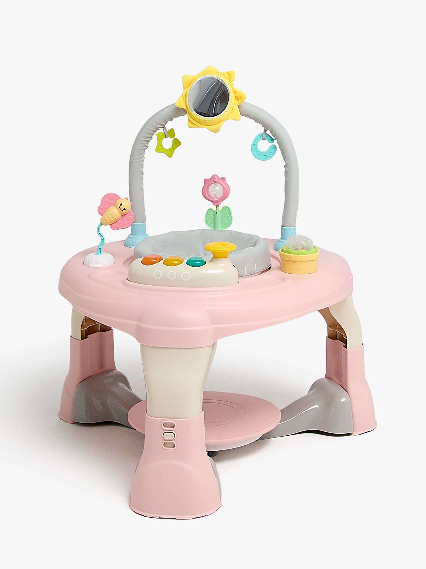 Aktivitetscenter fra Cloudberry Castle med en masse, et underholdende aktivitetslegetøj. Det har en sjov hoppeplade og tre højdejusteringer for at passe børn i forskellige højder. Når dit barn er for stort til at sidde i aktivitetscentret, kan det laves om til et legebord med skammel. - 3-i-1. - 360º sæderotation. - Aftageligt og vaskbart sæde. - Kan forvandles til et legebord med opbevaring. - Fremmer fantasien, finmotorikken og øje-hånd-koordinationen. - Testet og godkendt i henhold til: EN 71-1. - Medfølgende aktivitetslegetøj. - Maksimal belastning: 11 kg. - Anbefalet alder: Fra 6 måneder. - Anbefalet alder uden sæde: Fra 12 måneder afhængigt af barnets højde og evne til at stå eller sidde i aktivitetscentret. - Ramme: 100 % PP-plastik. - Hynde: 100 % polyester. - Batteri: 2 x AA 1.5V (medfølger ikke).