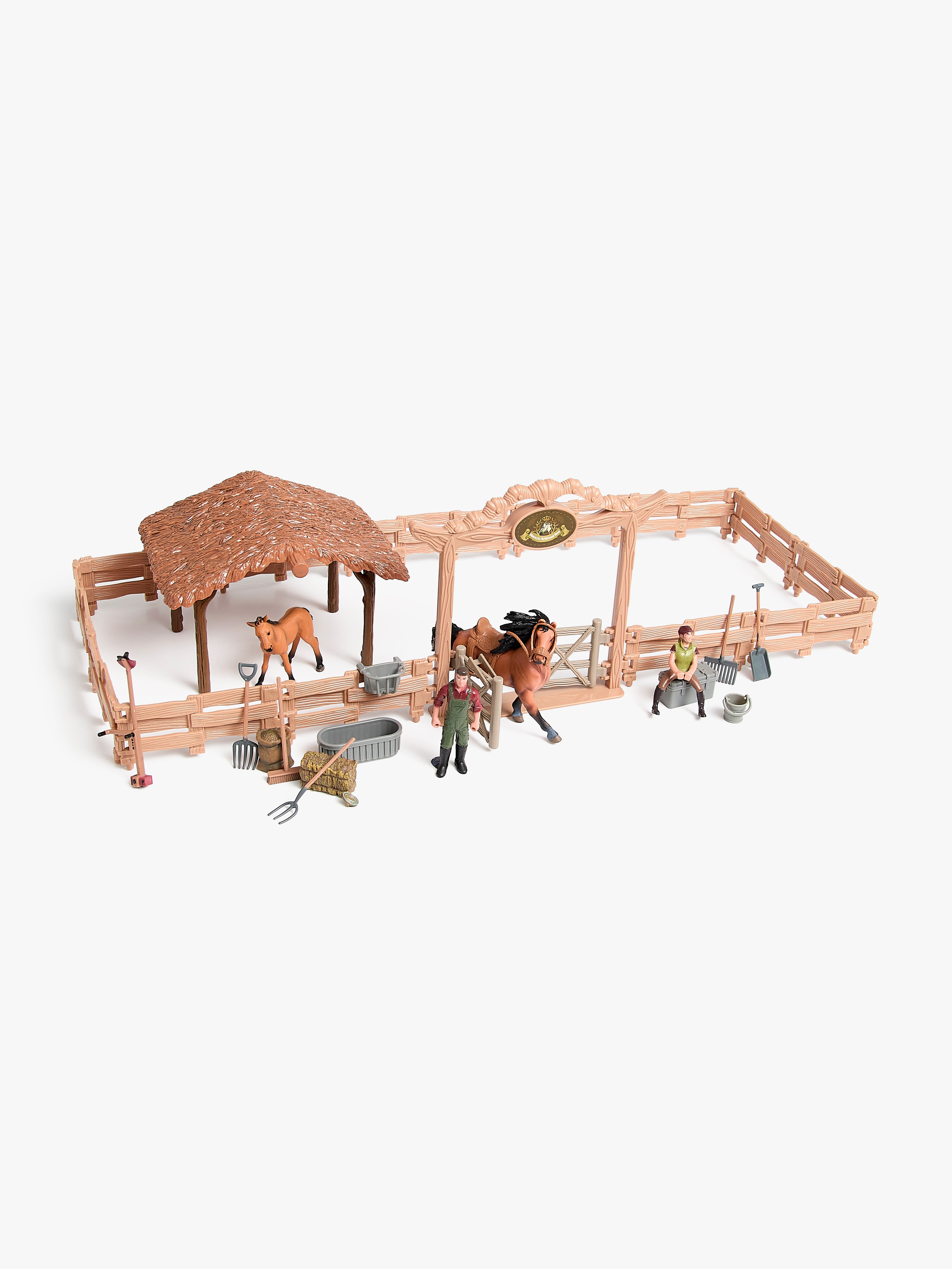 Tag med til Cloudberry Castle Western Ranch, hvor drømme om det vilde vesten bliver til virkelighed! Denne heste ranch er designet til at stimulere børns fantasi og kreative leg. Med en række detaljerede elementer, der inkluderer heste, cowboys og rodeo-aktiviteter, giver denne ranch timevis af underholdning.